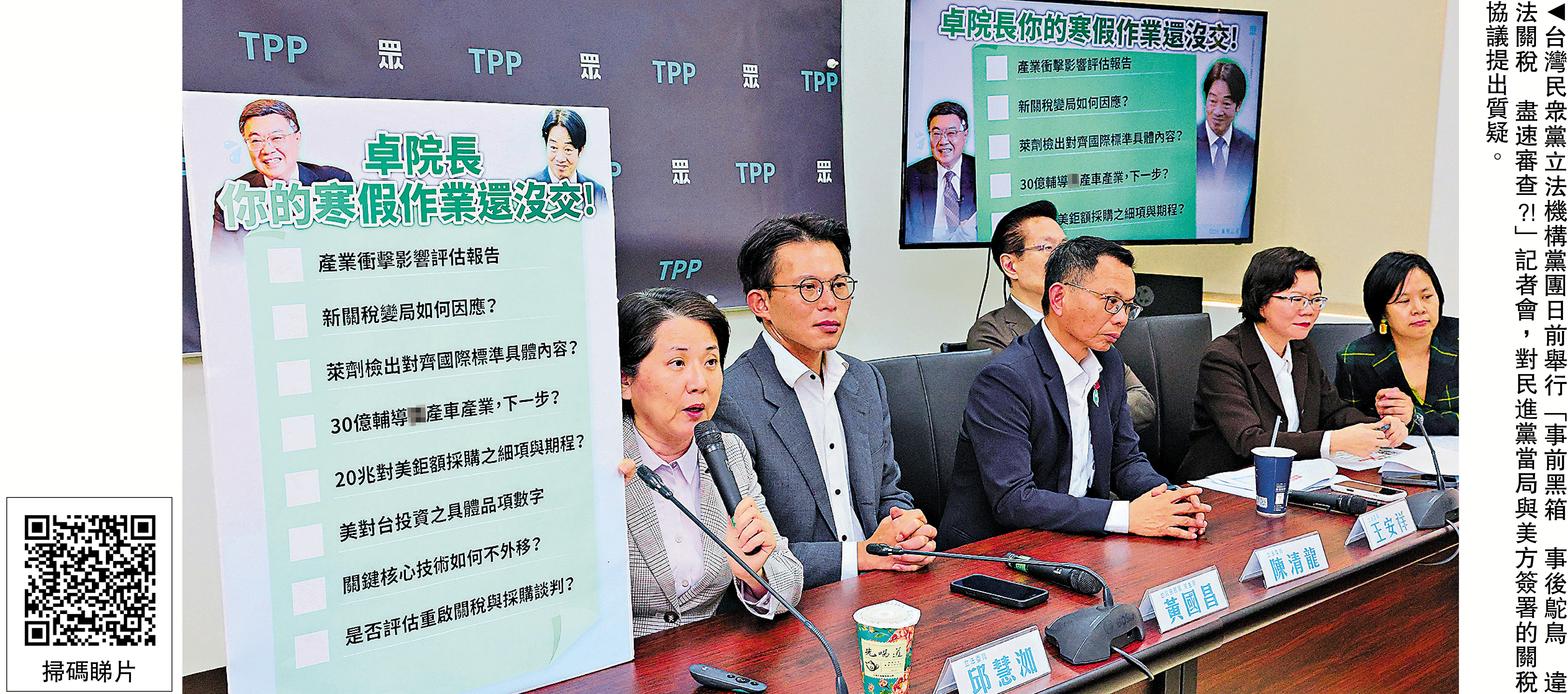 台灣民眾黨主席黃國昌表示,台美「對等貿易協議」的美方法律基礎已被推翻,協議內容勢必有所變動,民進黨當局應藉此機會與美方重新檢視整個文本,不能蒙混過關。