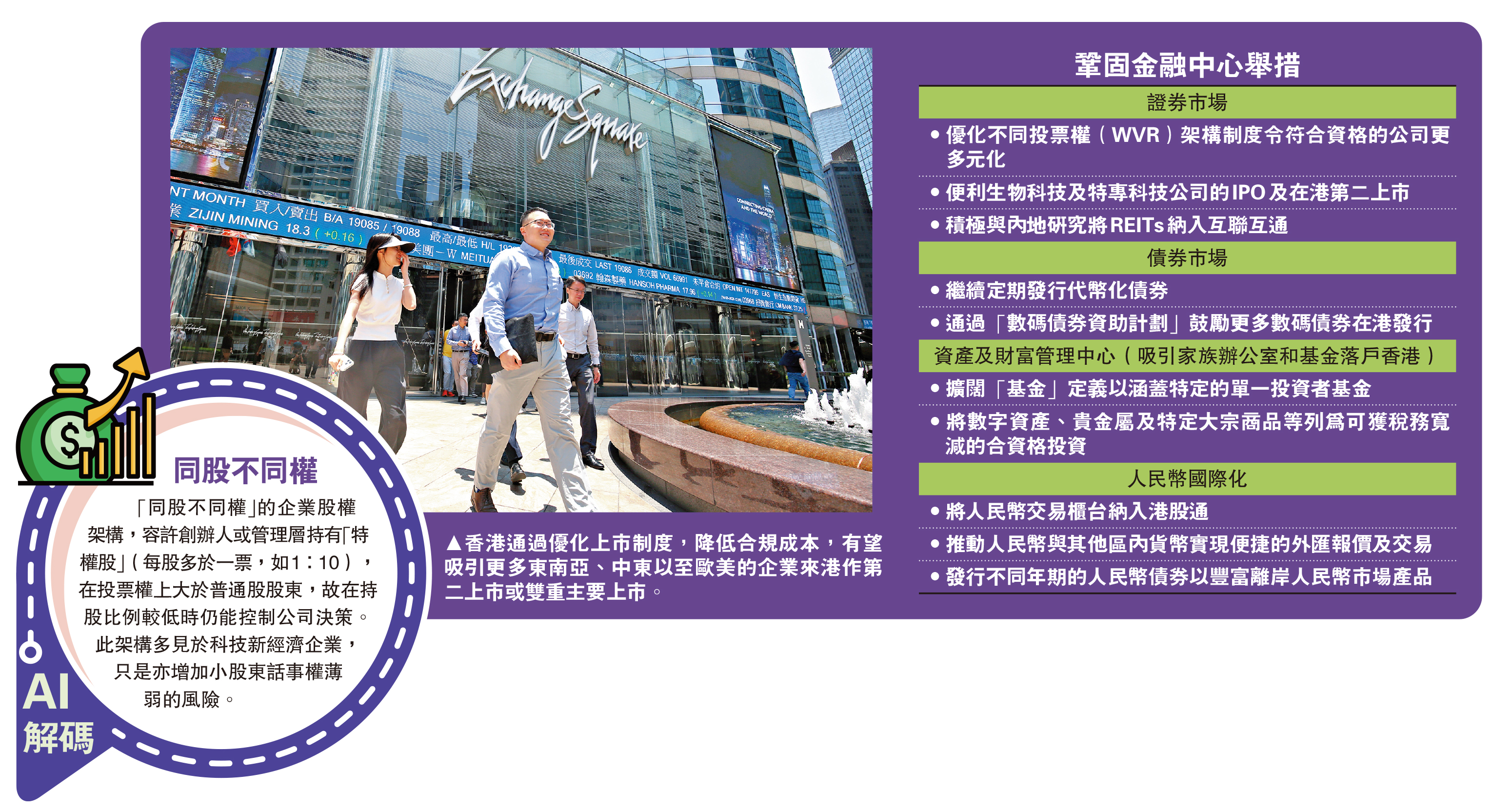 鞏固地位/港股多項改革 提升金融中心競爭力