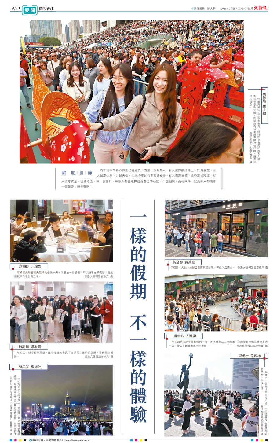 丙午馬年的春節假期已經過去,香港一般是3天,有人選擇離港北上,探親度歲;有人留港休息,共聚天倫。內地今年的假期長達9天,有人來港過節,或登高或臨海;有人排隊買金,投資增值。每一個節日,每個人都會選擇適合自己的活動,不盡相同;而相同的,就是各人都懷着一個願望:新年發財!