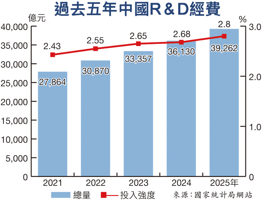 中國R&D投入強度2.8% 首超OECD國家均值 去年支出總量逼近4萬億元增8.1% 高技術產品出口額增13.2%