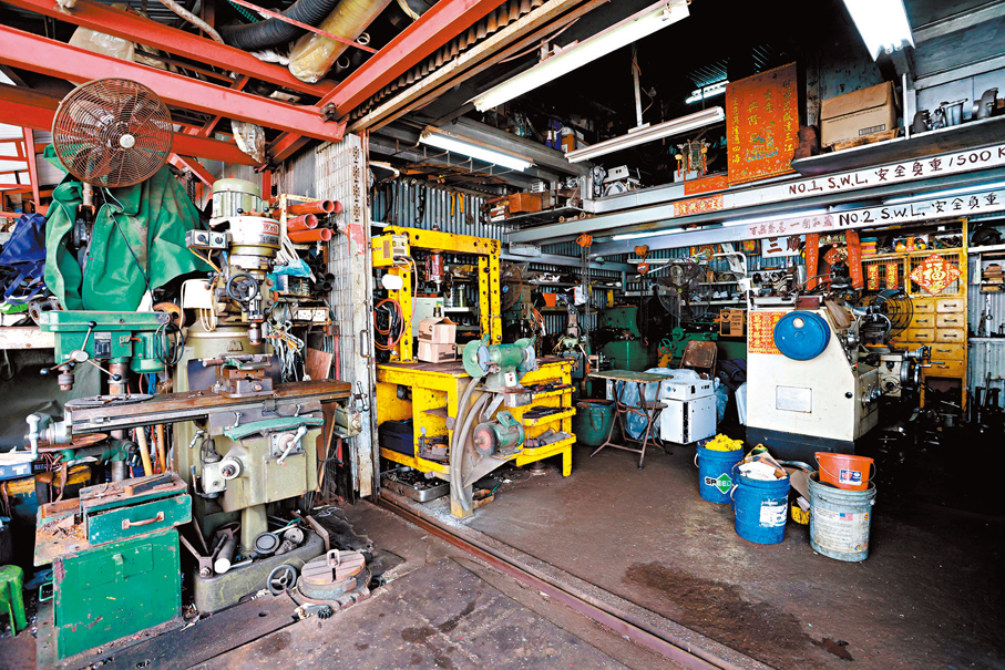 廠房布滿油漬的機器與工具正是香港船舶維修業變遷的縮影。