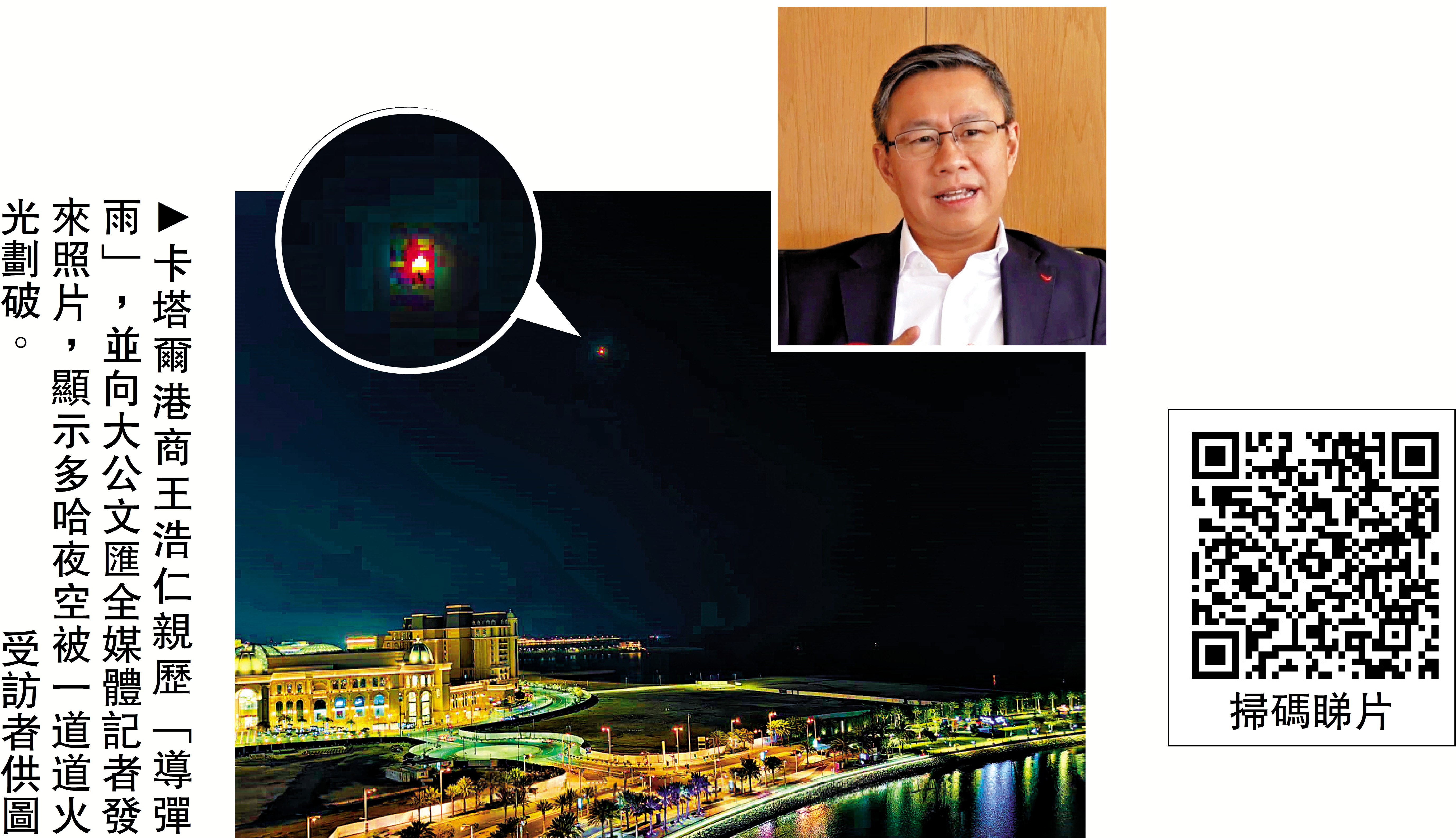 王先生在當地從事石油和建築貿易已有7年。「這是我在卡塔爾生活七年來經歷的第三次衝突,也是最嚴重一次。」王先生形容,導彈像雨點一樣,一連串掉下來,卡塔爾防空系統攔截了大部分,但仍有偏差。公司和住宅上空都有導彈飛過,有兩枚擊中附近美軍基地,有的被攔截之後碎片墜落民居,導致市民受傷。他透露,卡塔爾當局透過手機向所有人發送緊急通知,包括遊客。作為石油貿易商,王先生坦言大家都在觀望,對中國而言,採購價必然上漲。與記者通話期間,王先生那邊多次傳來警報聲和跑動聲。「Sorry,我要去睇下。」王先生說。「沒事,攔截成功。」再次回來,他的聲音透出疲憊。王先生補充,他準備隨時落去地庫避難。後來,王先生發來幾段親自拍攝的影片。畫面裏,多哈夜空被一道道火光劃破,遠處傳來沉悶爆炸聲。\大公文匯全媒體記者周傾芫