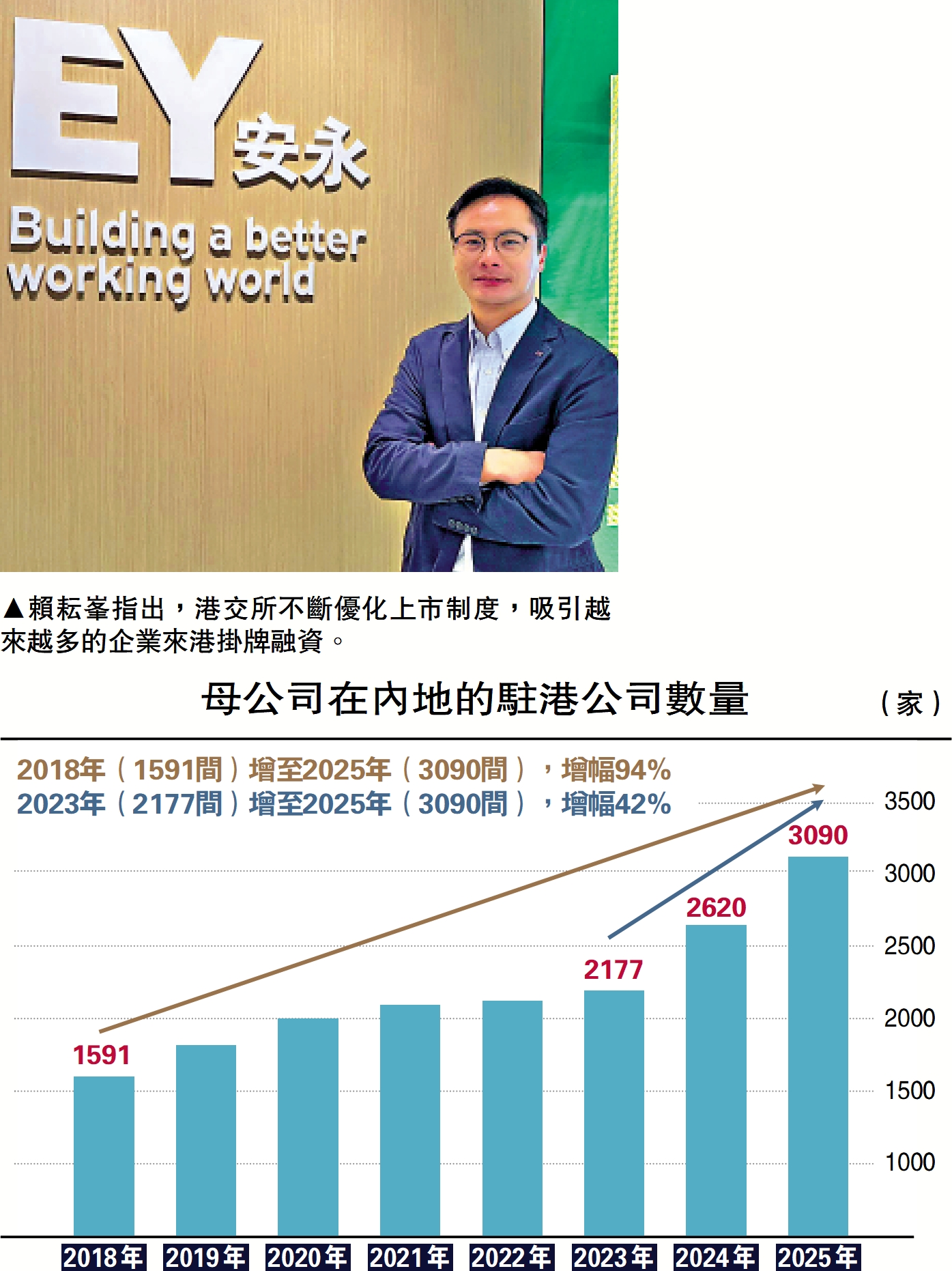 賴耘峯續稱,企業選擇上市地,關鍵是如何與當地政策和金融服務業形成聯動,港交所近年陸續推行多項改革措施,不斷優化上市制度,相信有助為赴港企業注入信心。