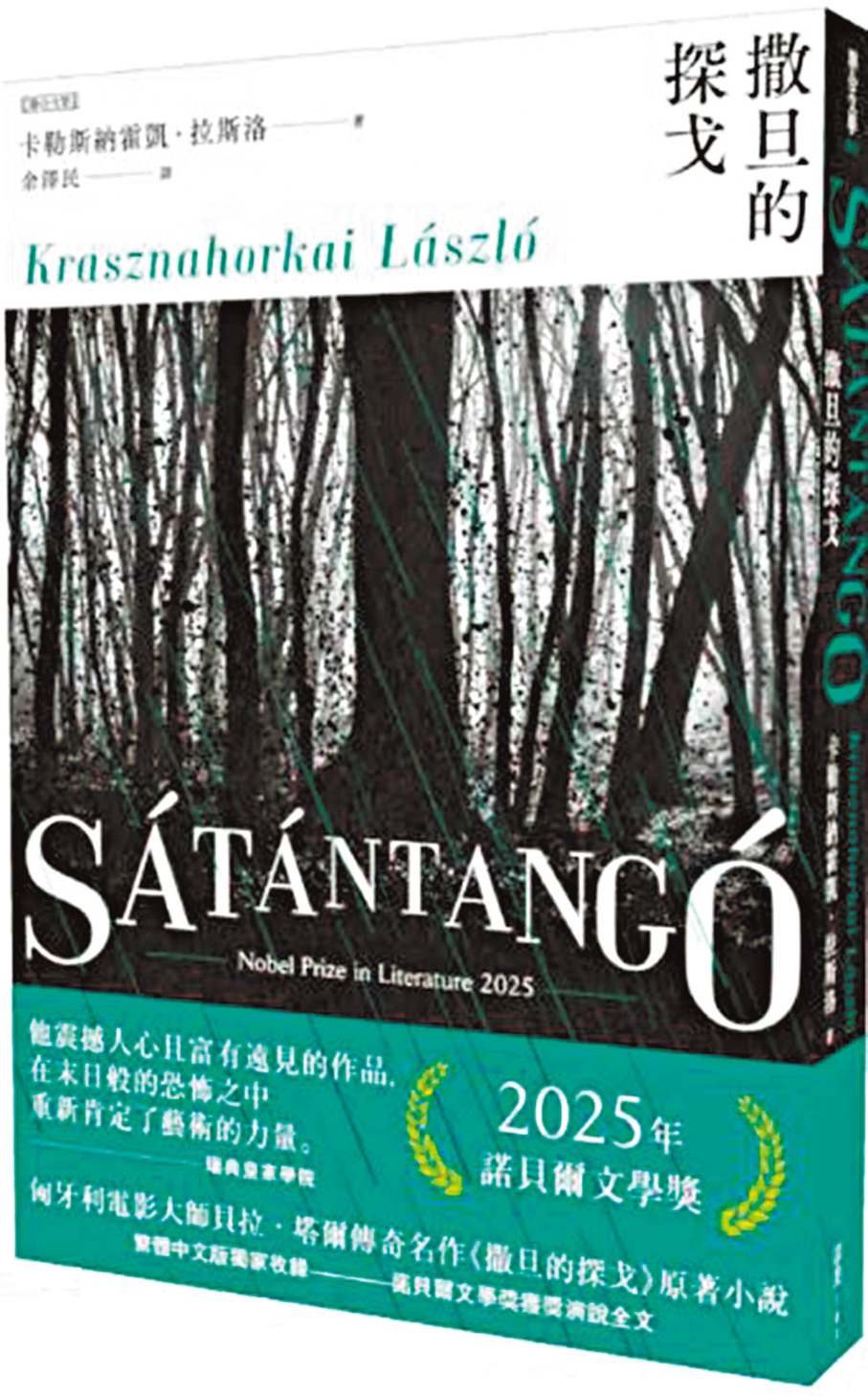 2025年諾貝爾文學獎得主卡勒斯納霍凱·拉斯洛作品。故事發生在陰雨連綿、泥濘不堪的晚秋季節,一個破敗的荒野小鎮,十幾個無處營生的村民,演繹一齣荒涼險惡,充滿酒精、偷窺、陰謀、背叛、做夢與夢碎的行動劇。本書以探戈舞步的反覆和迴旋,前進六步後退六步,十二個樂章環環相扣、首尾相連。小說人物遭受命運操弄擺布,殘酷無情且荒蕪蒼涼,卻令人深深着迷,充滿愉悅的怪誕:步履蹣跚、終日酗酒記錄一切的老醫生,行走在垃圾紙屑紛飛街道的流浪漢,毒死寵物貓毒死自己等待天堂來臨的小女孩,宛如彌賽亞號召村民前往應許之地的先知/騙子……