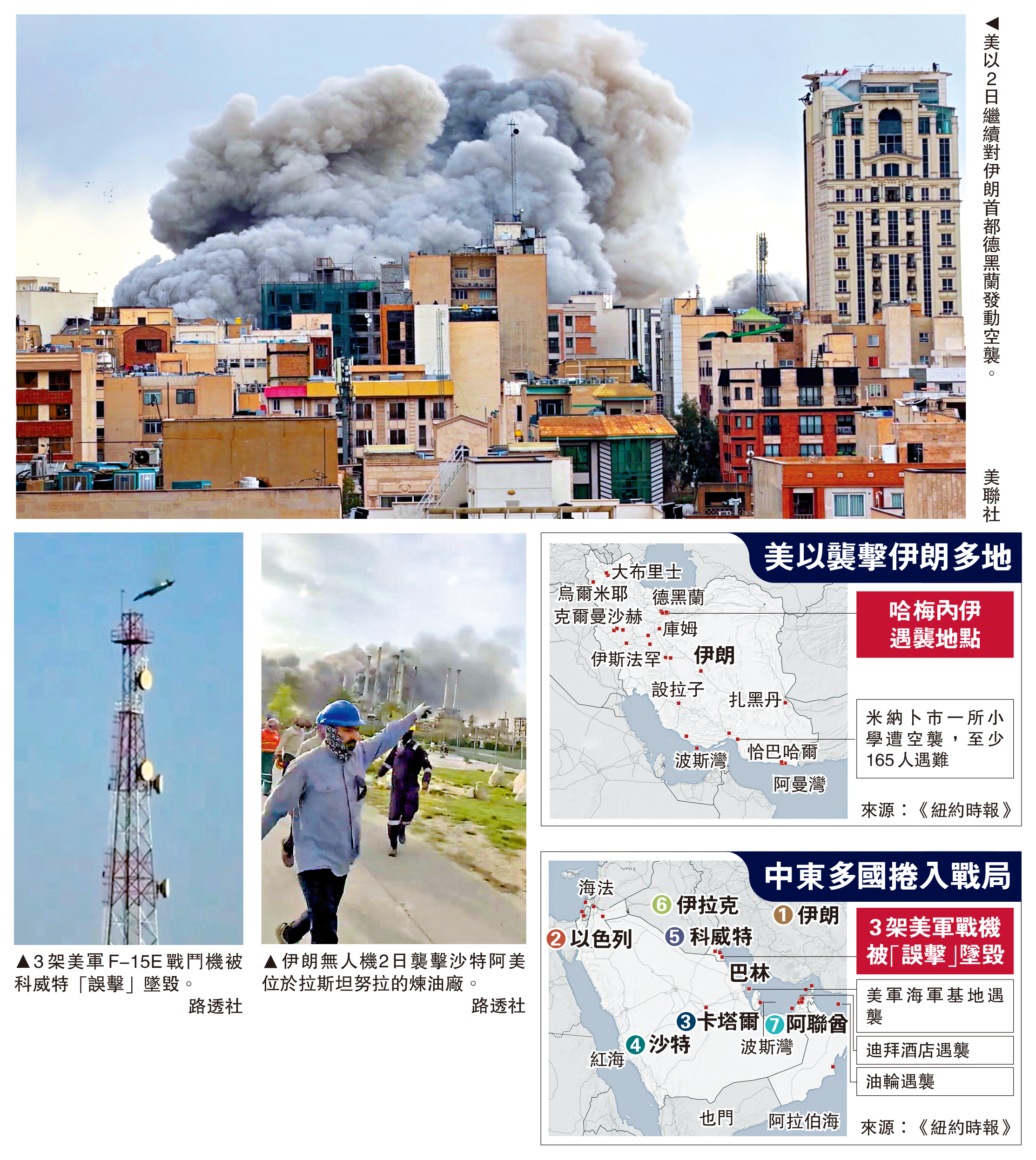 3月2日,美國和以色列對伊朗的軍事打擊進入第三天。美軍當天表示,3架戰機「明顯」遭科威特防空力量誤擊,另有4名美軍士兵在對伊朗行動中身亡。伊朗繼續展開大規模反擊,並表示做好打長期戰爭的準備。同日,戰火延燒至整個波斯灣,多國硝煙四起。
