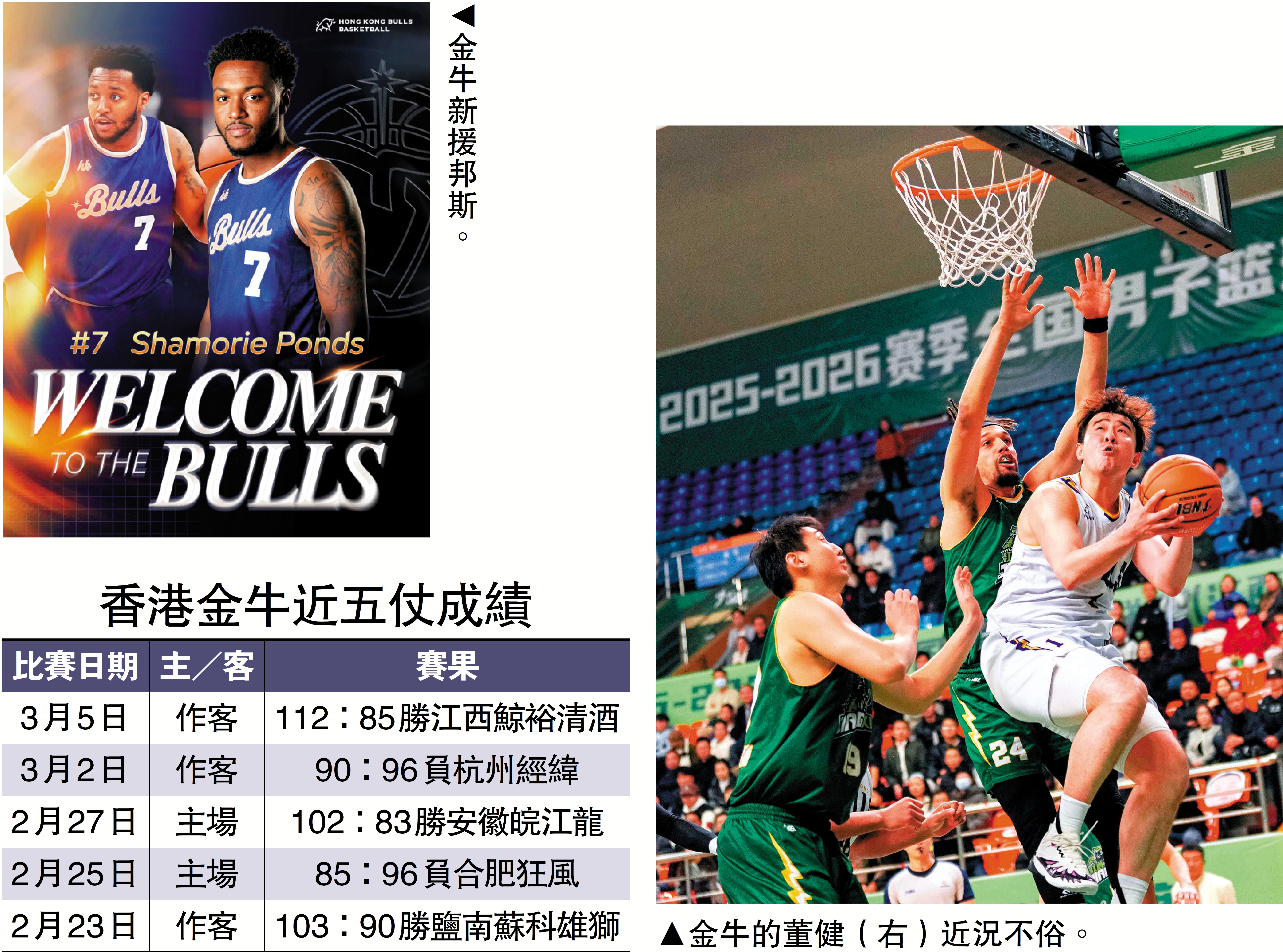 金牛昨日宣布曾效力NBA多倫多速龍的得分後衛邦斯(Shamorie Ponds)正式加盟,為球隊在全國男子籃球聯賽(NBL)餘下的常規賽賽事及季後賽的外線注入重量級戰力。