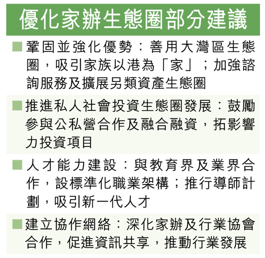 報告指出,本港活躍的IPO市場也對家辦業發展起到推動作用。香港家辦行業增長動力強勁,除了傳統財富管理外,對慈善事業、影響力投資及風險管控策略需求日益增加,將成新增長點。