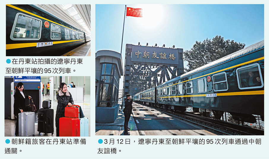 中朝國際鐵路運輸專列12日上午10時在遼寧丹東首發開行,從丹東站經中朝友誼橋駛向朝鮮平壤。該線路2020年初因疫情暫停運營,時隔六年重啟,也標誌着這條跨境客運通道全面恢復常態化。香港文匯報記者在現場看到,當日開行赴朝鮮平壤的首發列車為1車頭加7車廂運行,其中5節為客車車廂,並於當地時間18時07分抵達平壤站。據新華社報道,該趟列車抵達平壤站時,中國駐朝鮮大使王亞軍等使館外交官到車站迎接搭乘這趟列車來朝鮮的旅客。目前,該國際列車全線售票僅接受線下辦理,列車出入境手續可在丹東口岸與新義州口岸辦理。