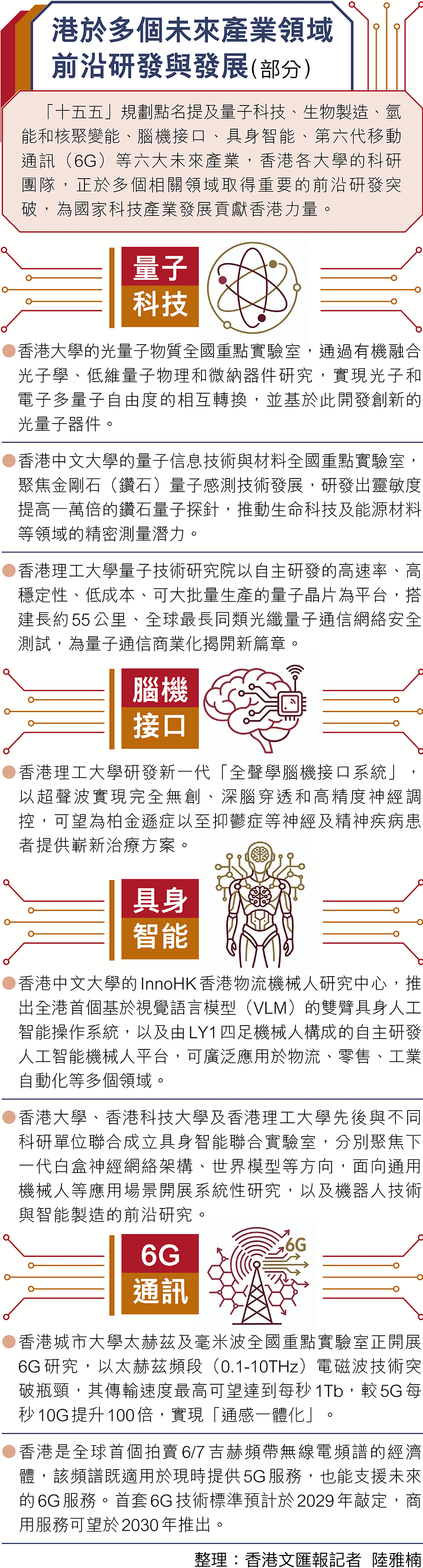 港於多個未來產業領域前沿研發與發展(部分)