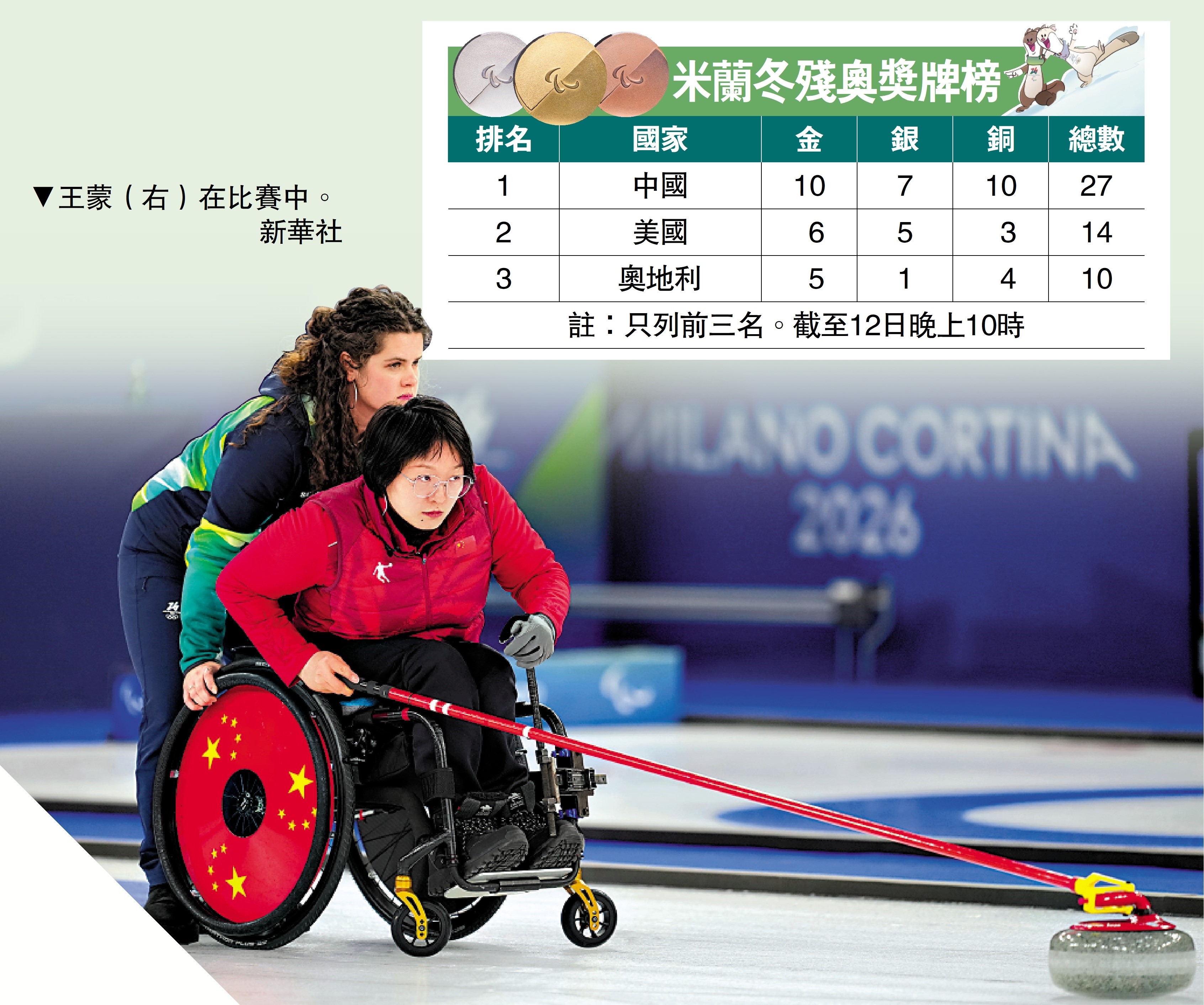由王蒙、劉微、陳建新、王海濤、張強組成的中國輪椅冰壺隊,在2018年平昌冬殘奧會取得歷史性佳績。他們在輪椅冰壺混合團體賽過關斬將,最終躋身決賽。決賽面對冬季運動傳統強隊挪威,國家隊選手頂住壓力,打出精彩的團隊配合,結果以6:5取勝奪金,實現了國家隊在冬殘奧獎牌「零的突破」,亦是首枚金牌。現年37歲的王蒙相隔8年夥拍新星楊金橋摘得米蘭冬殘奧輪椅冰壺混雙金牌,個人兩度在冬殘奧站上頒獎台最高位置。
