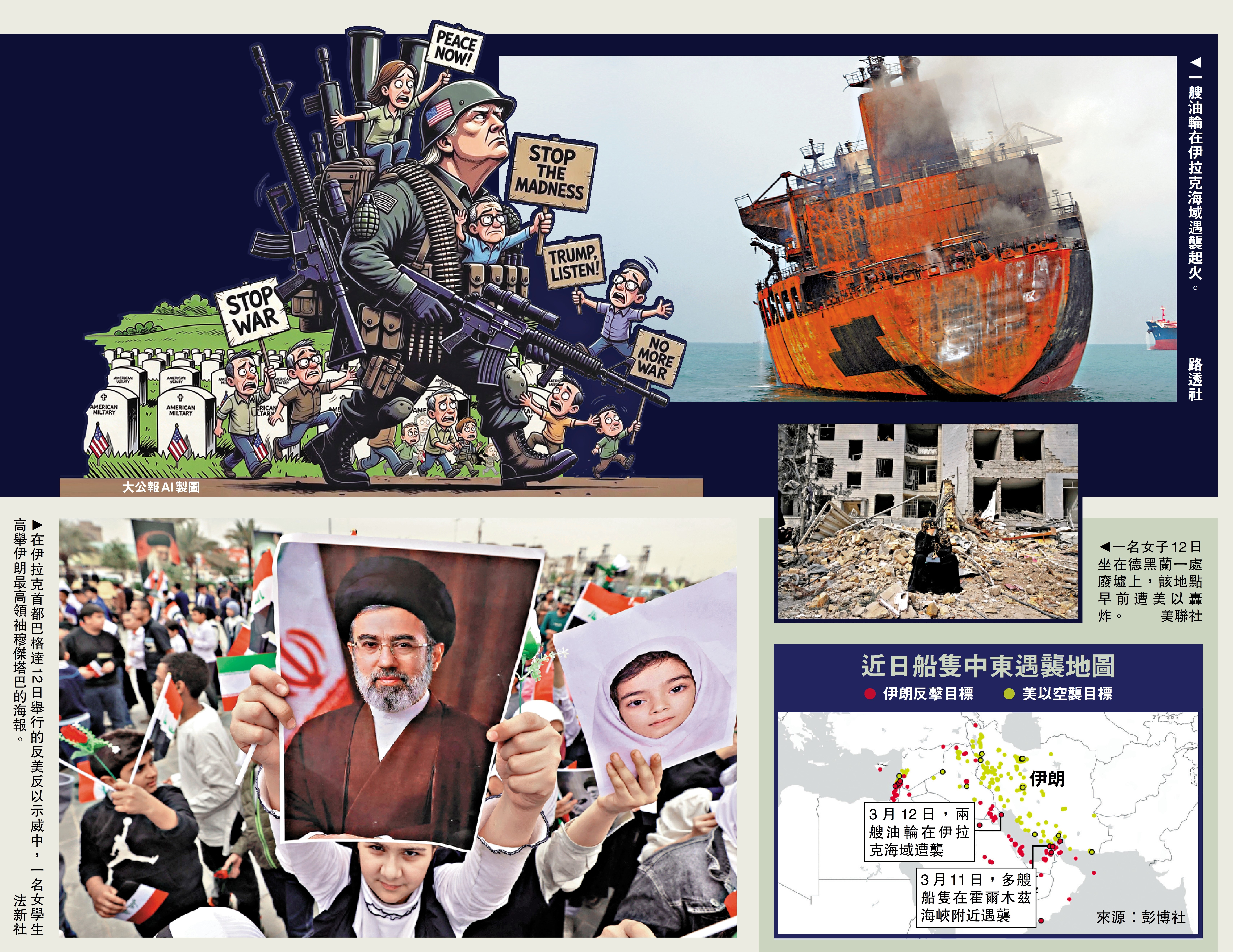 伊朗新任最高領袖穆傑塔巴·哈梅內伊12日發表上任後首次聲明,表示伊朗不會放棄復仇,將繼續使用封鎖霍爾木茲海峽這一手段,並呼籲地區鄰國盡快關閉美軍基地。伊朗展現強硬態度之際,五角大樓官員11日表示,在軍事行動的頭6天,美軍花費就已超過113億美元(約881億港元)。分析認為,衝突外溢效應正從經濟、政治等多層面反噬美國,面對油價不斷攀升和國內反戰聲浪高漲,特朗普政府「騎虎難下」。\大公報記者 陳明