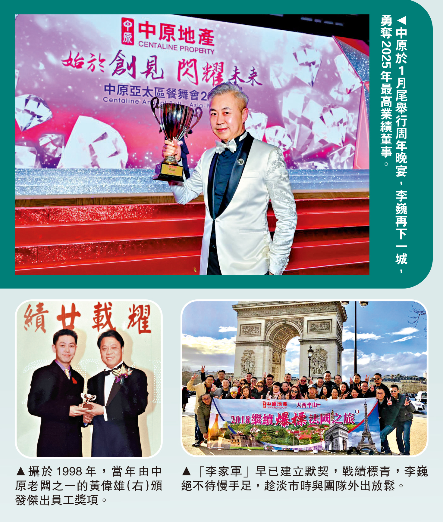 一步一腳印!他用汗水及努力鋪砌金牌代理之路,打造自己的傳奇舞台,由猶如荔園的小劇場晉升到紅館,再打入演員及運動員夢魅以求的啟德體育園。他是地產界無人不識的金牌地產代理─中原地產西半山首席營業董事李巍(人稱阿鬼)。\大公報記者 梁穎賢