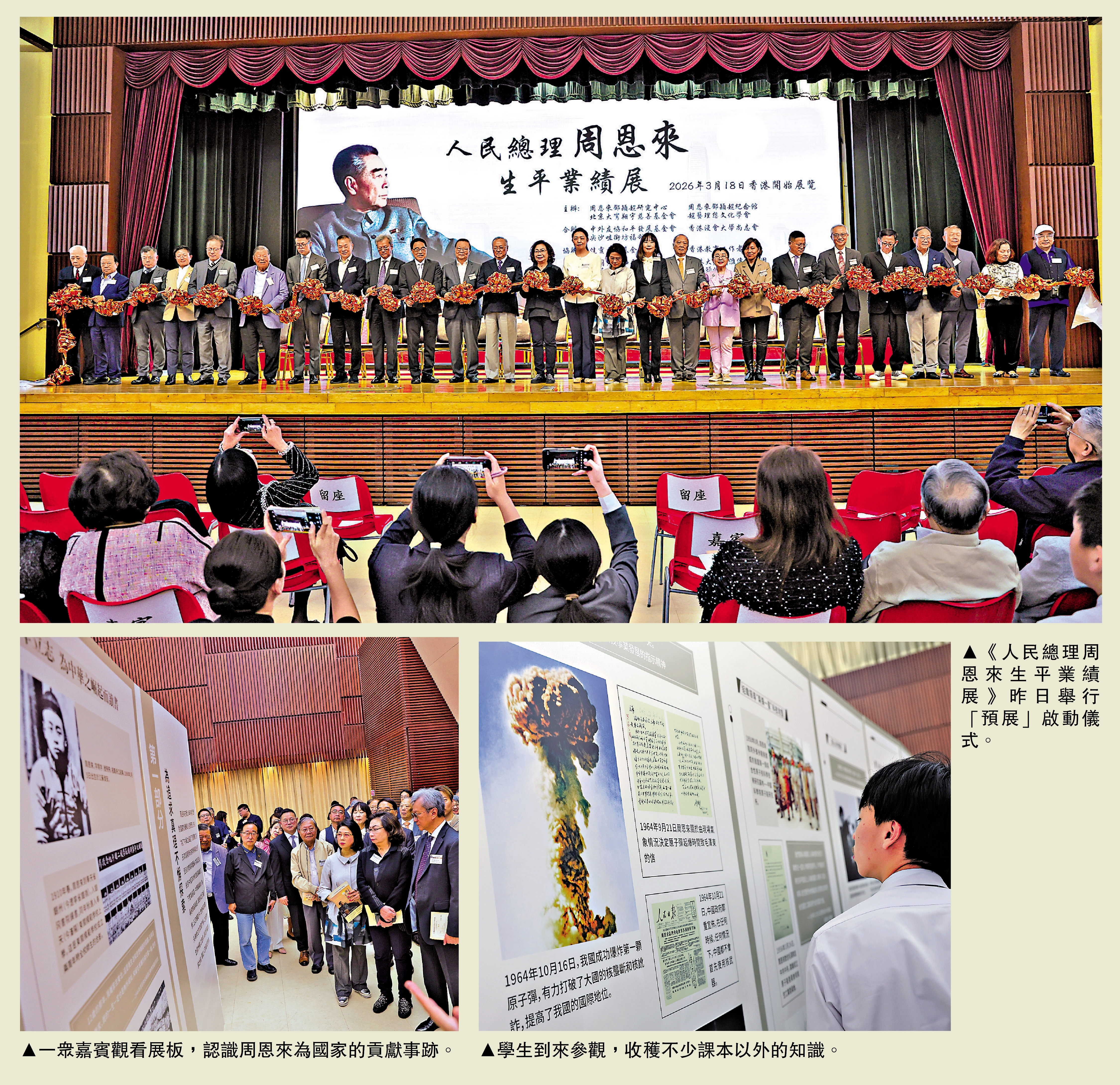 《人民總理周恩來生平業績展》昨日在尖沙咀會堂舉行「預展」啟動儀式。「預展期」為期7天,直至本月24日結束。學校可以團體預約形式參觀,每次預約人數不超過50人,目前已有多所學校報名。