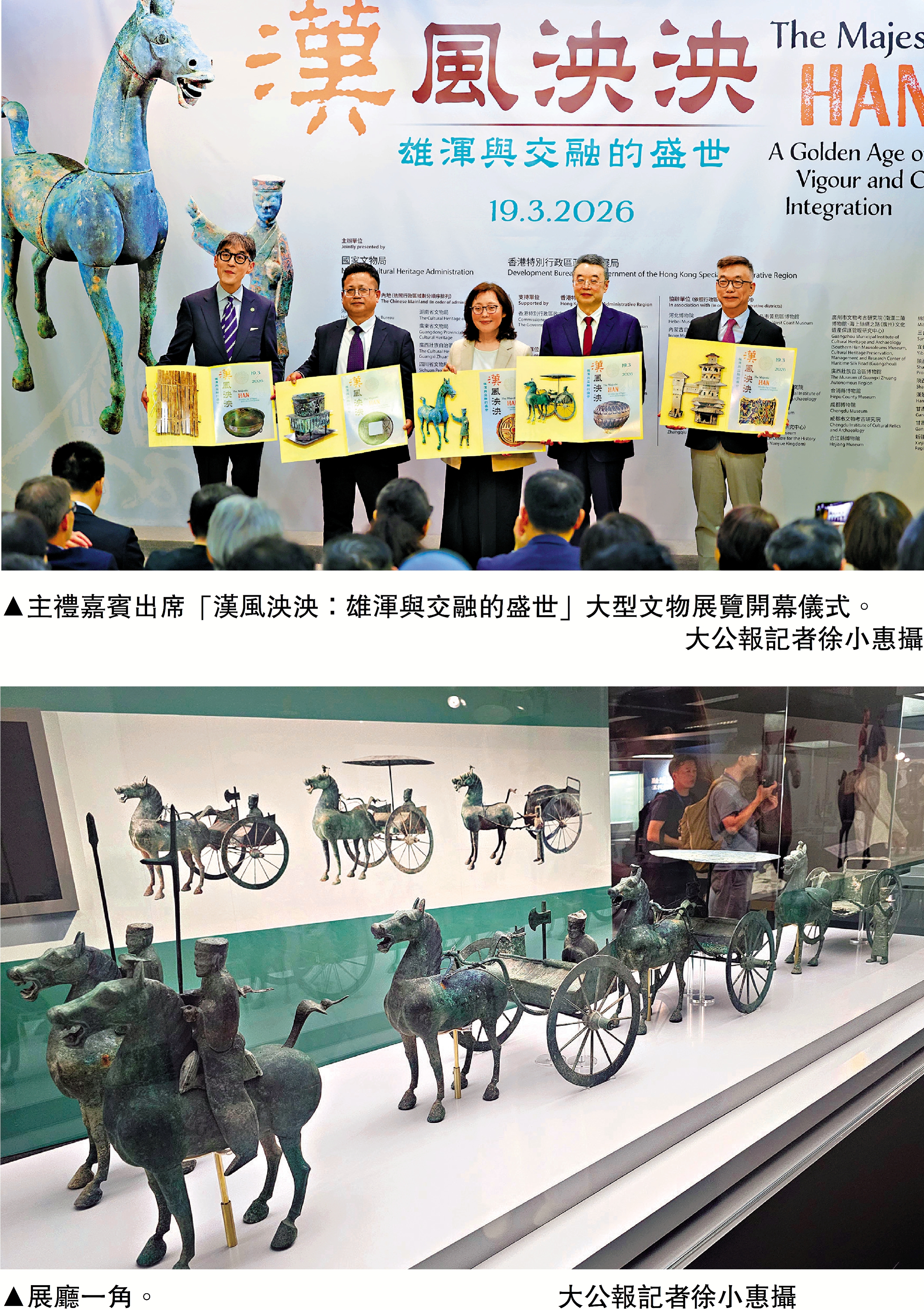 開幕禮昨天下午舉行。發展局局長甯漢豪在致辭中回顧了國家文物局和發展局去年合辦的「唐風萬里:多元交融開放的盛世」展覽,吸引超過12.7萬人次到場,雙方今年再接再厲,合辦以漢朝為主題的大型文物展覽,她期待市民和遊客透過珍貴文物,接觸漢代的輝煌歷史,體會中華文明的深厚底蘊,並在香港與內地的文物對話中,體驗嶄新的觀賞視野。
