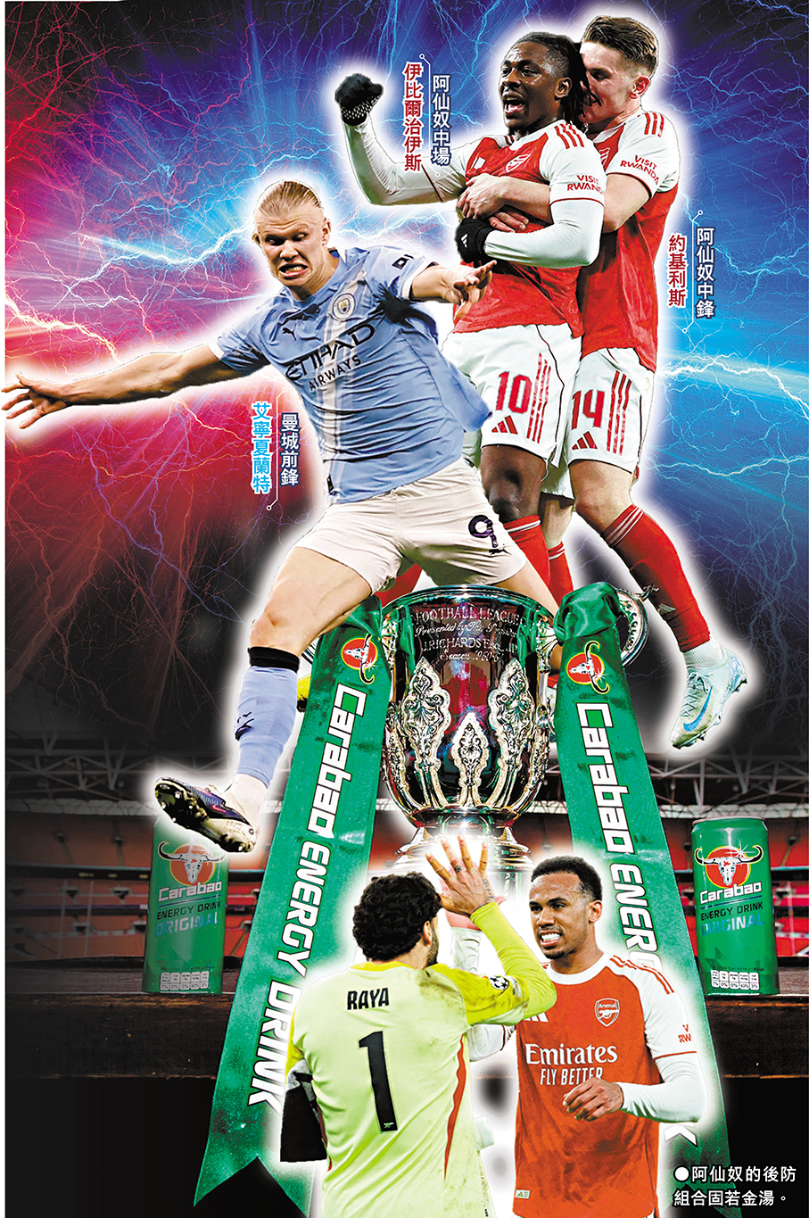 大熟大勇的阿仙奴將對本季首個錦標發起衝擊,香港時間周一(23日)凌晨12時30分將於溫布萊球場與曼城爭奪英格蘭聯賽盃冠軍,近14場保持不敗的阿仙奴不僅擁有本季英超最強防線,伊比爾治伊斯及約基利斯兩大鋒線新援更是逐漸上力,相反曼城狀態平平近五戰只得一勝,射手艾寧夏蘭特亦陷入低谷,攻守兼備的阿仙奴可望打破長達六年的錦標荒,向今季「四冠王」的目標繼續邁進。(TVB myTV SUPER周一凌晨12:30a.m.直播) ●香港文匯報記者 郭正謙