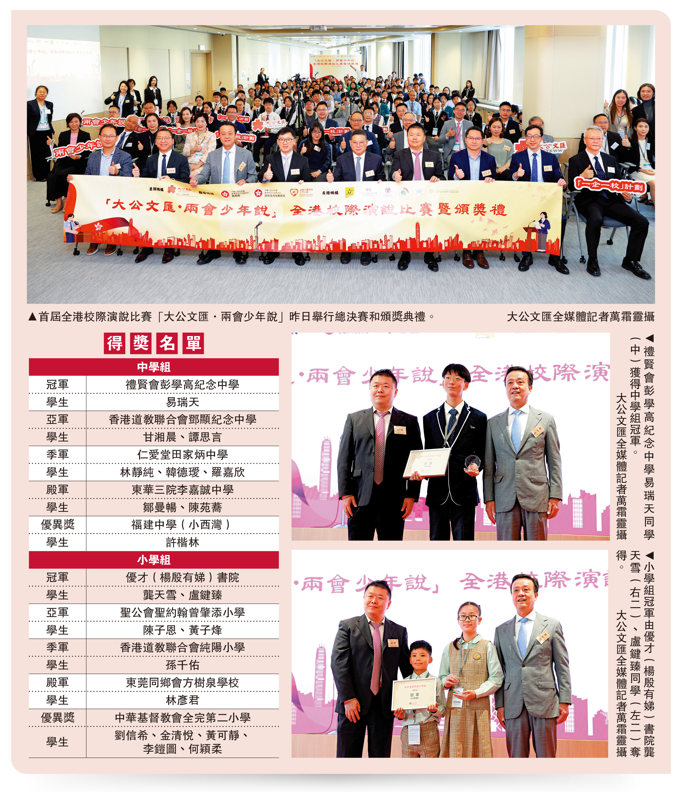 首屆「大公文匯·兩會少年說」總決賽圓滿舉行 獲獎學生:「十五五」為港青帶來發展機遇