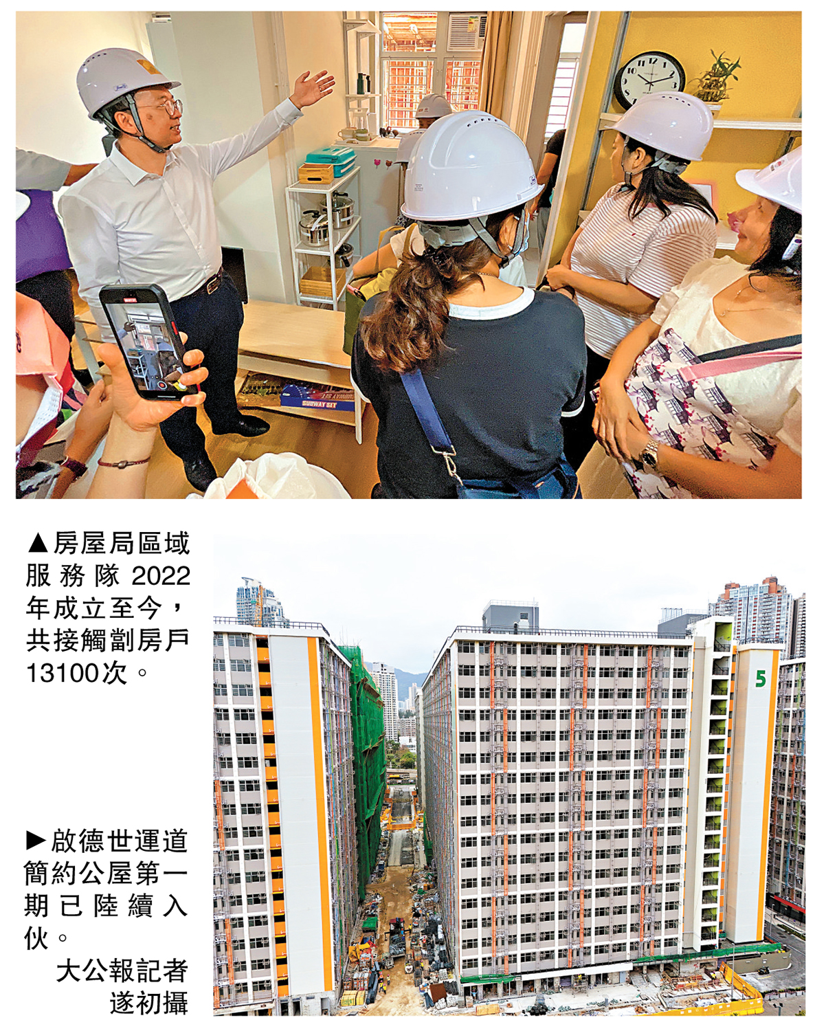 【大公報訊】記者鄭文迪報道:簡樸房條例本月起生效,有人關注部分劏房租戶或因業主改建單位而面臨逼遷。房屋局昨日表示,六隊涵蓋港九新界不同地區的區域服務隊一直透過不同的渠道,接觸分間單位租戶,並提供適切支援,自區域服務隊2022年成立至今,合共接觸分間單位租戶13100次,已轉介約1000個有需要住戶申請簡約公屋及過渡性房屋,單計去年至今,已轉介約370個住戶申請簡約公屋及過渡性房屋。