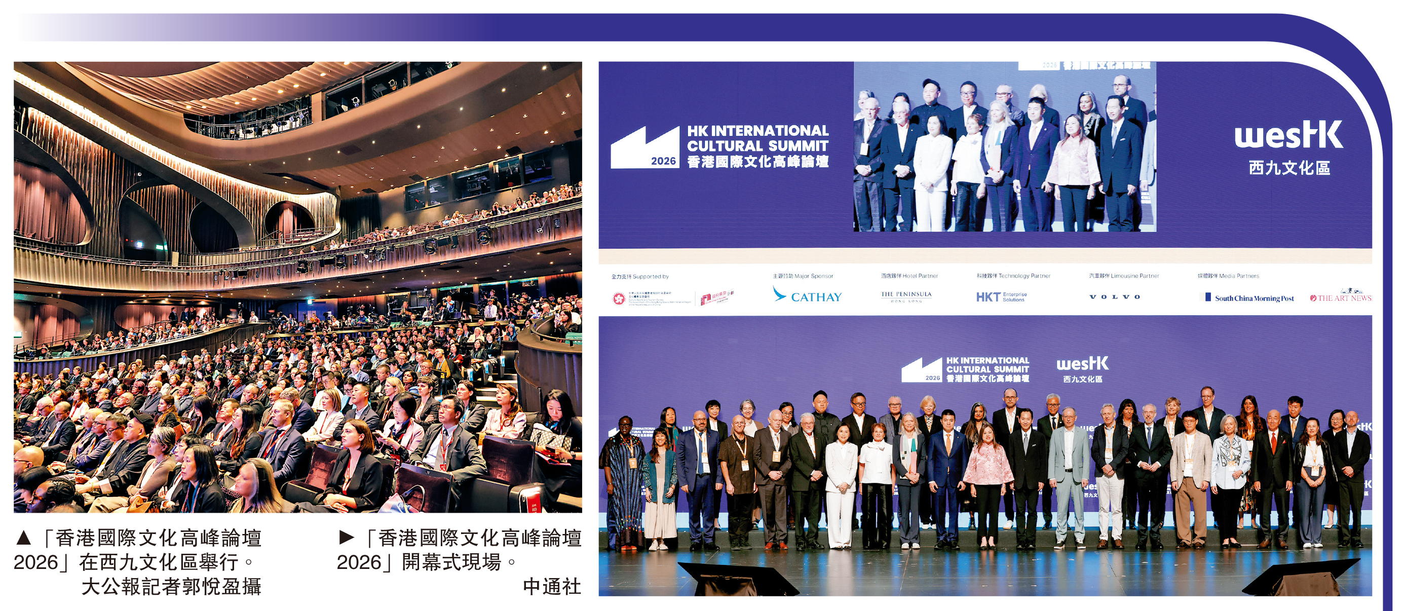 「香港國際文化高峰論壇2026」昨日於西九文化區舉行。本屆論壇主題為「藝創社群,無限可能」,匯聚近30位來自14個國家及地區的嘉賓講者,吸引超過1000名來自世界各地的參與者,圍繞藝術與社區、文化交流等議題展開討論。