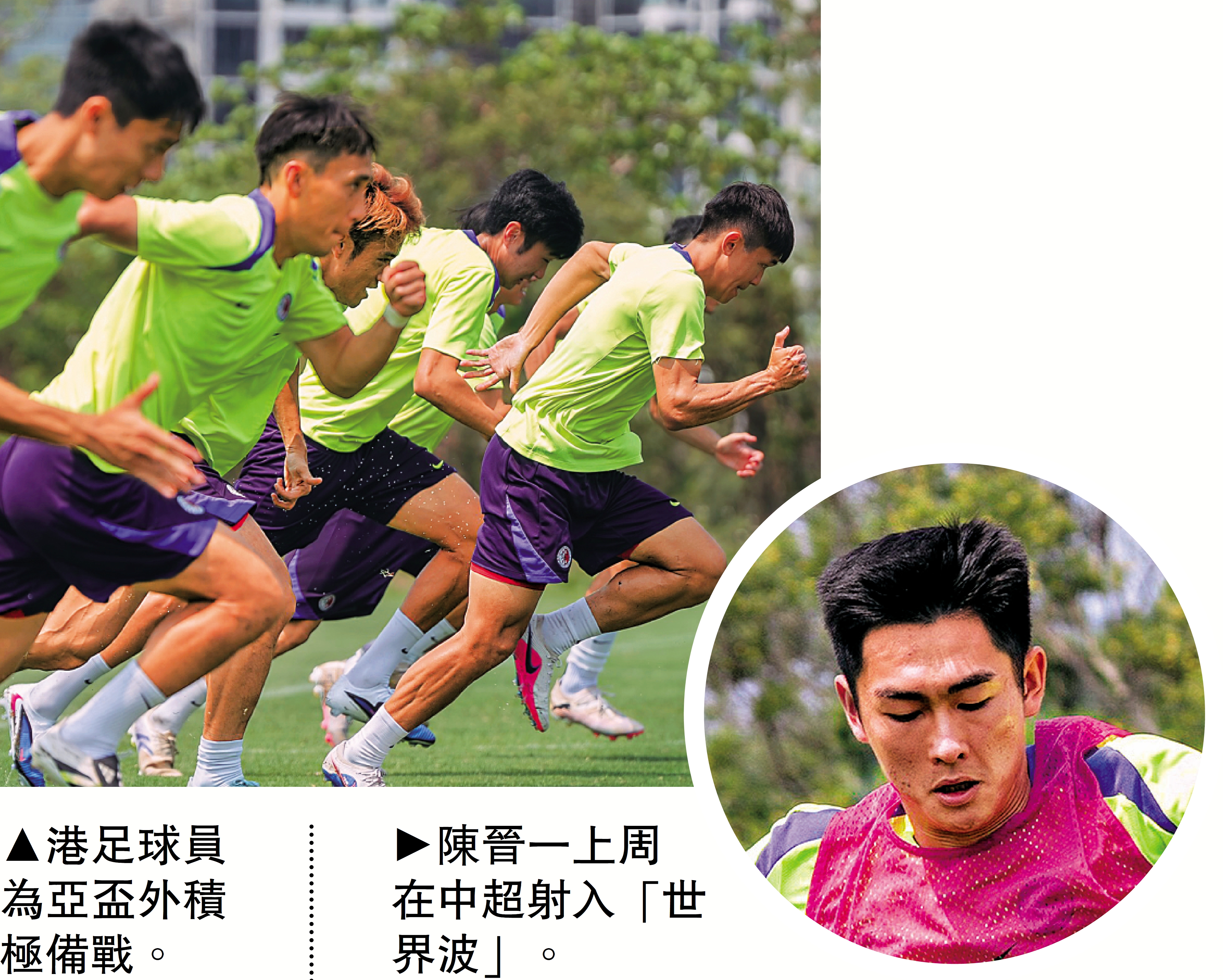【大公報訊】中國香港足球代表隊續為亞洲盃外圍賽作客對陣印度備戰。港足25日上午在賽馬會香港足球總會足球訓練中心進行練習,缺席首天操練的陳晉一及黃威同告歸隊,港足23人大軍終於齊集訓練。港足近來有不少「中超兵」及外流球員表現不俗,當中剛在中超射入罰球「世界波」的陳晉一,亦在操練中苦練罰球,隨時在對陣印度一仗中再有驚喜。
