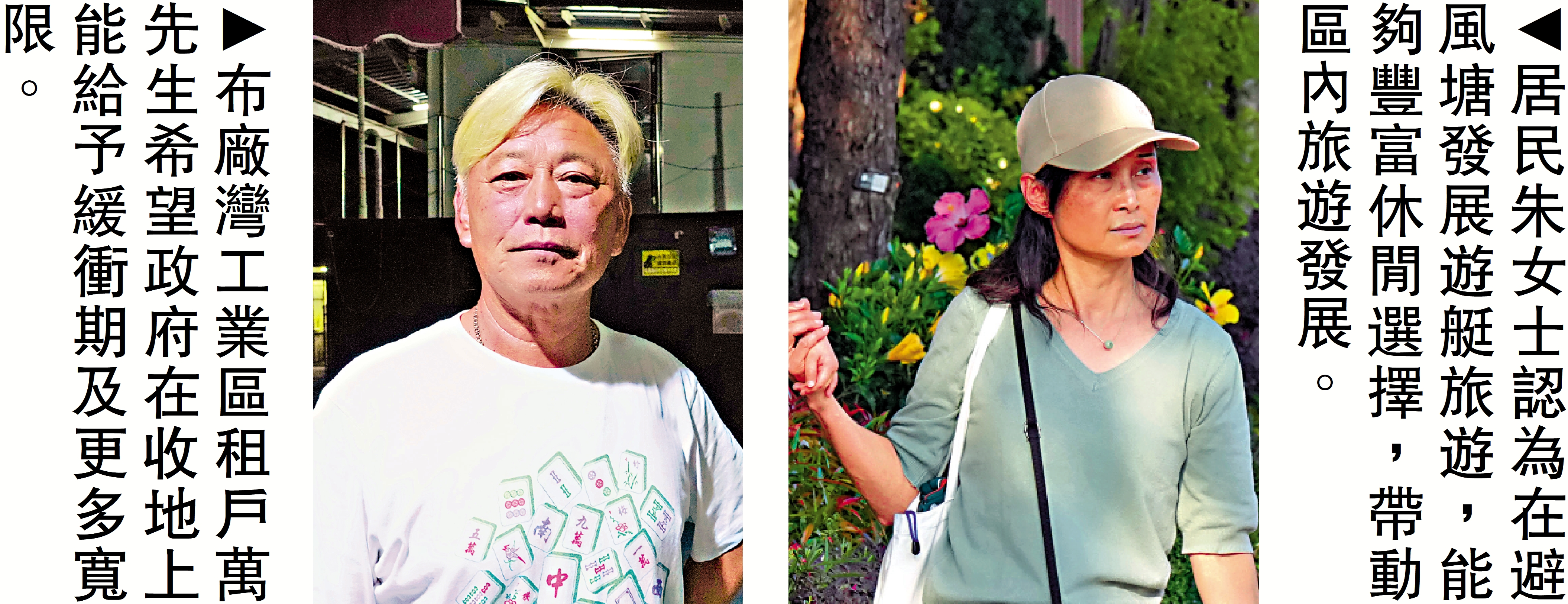 69歲的余生自父輩開始便以捕魚營生,十年前曾是船主,如今退休閒居。他支持擴建避風塘及發展遊艇旅遊,因為不僅能改善船隻亂泊問題,更能帶旺傳統漁業文化旅遊,「好似長洲一樣,將漁船齊齊整整停泊一處,一定靚!更加多遊客來。」他續說,「雖如今漁船數量日漸減少,但南區是香港漁業的主力,歷史不會褪色。」