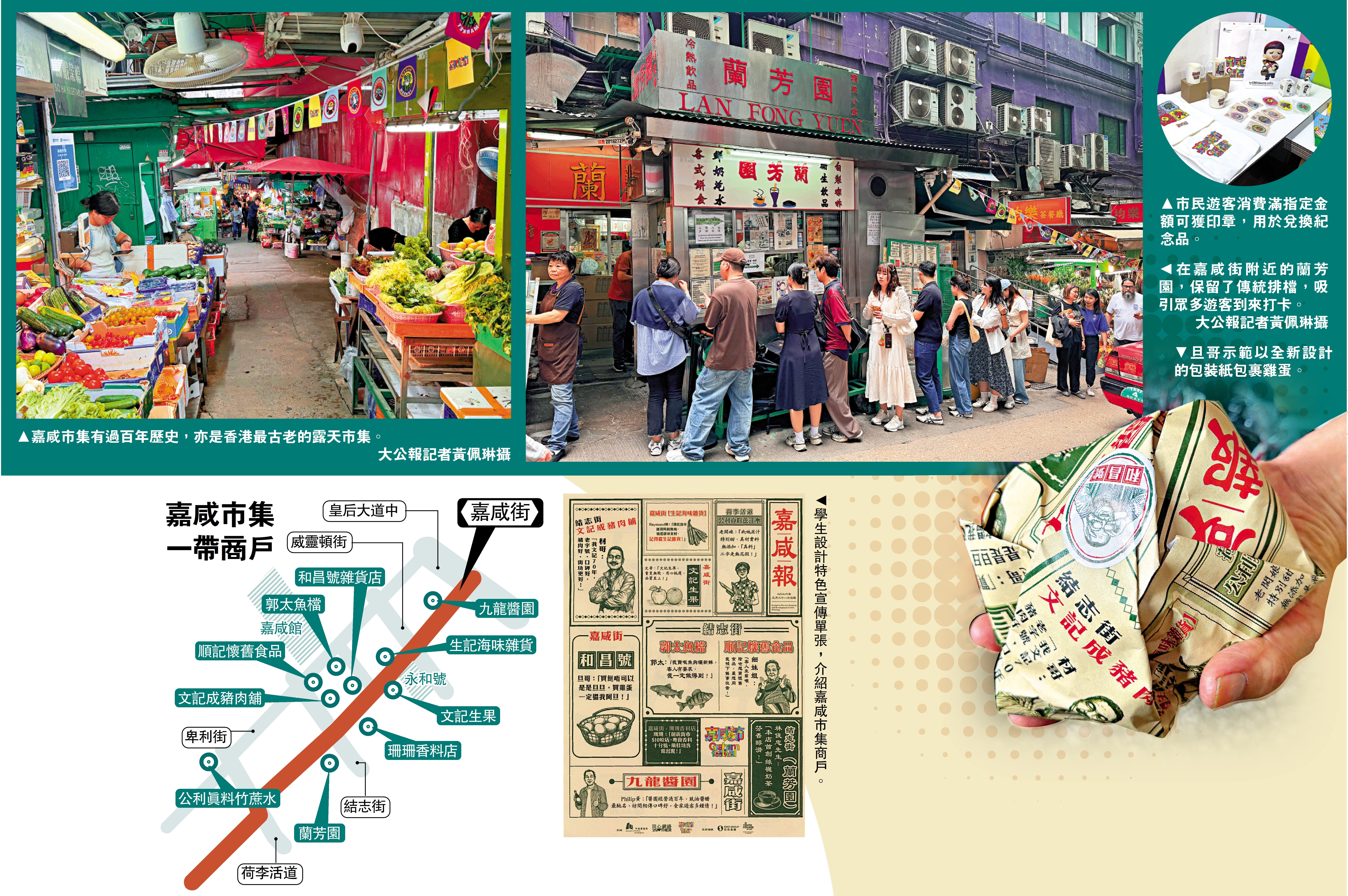 體驗本地風土人情的「深度遊」漸成旅遊新潮,香港這個國際大都會不乏地道本地特色景點。在有過百年歷史的中環嘉咸街市集,市區重建局昨起舉辦首屆「嘉咸節」,聯同近100個市集商販及周邊商店,包括蘭芳園等代表性商戶,透過更換新包裝、憑消費兌換紀念品等推廣活動,吸引更多市民和遊客到訪。