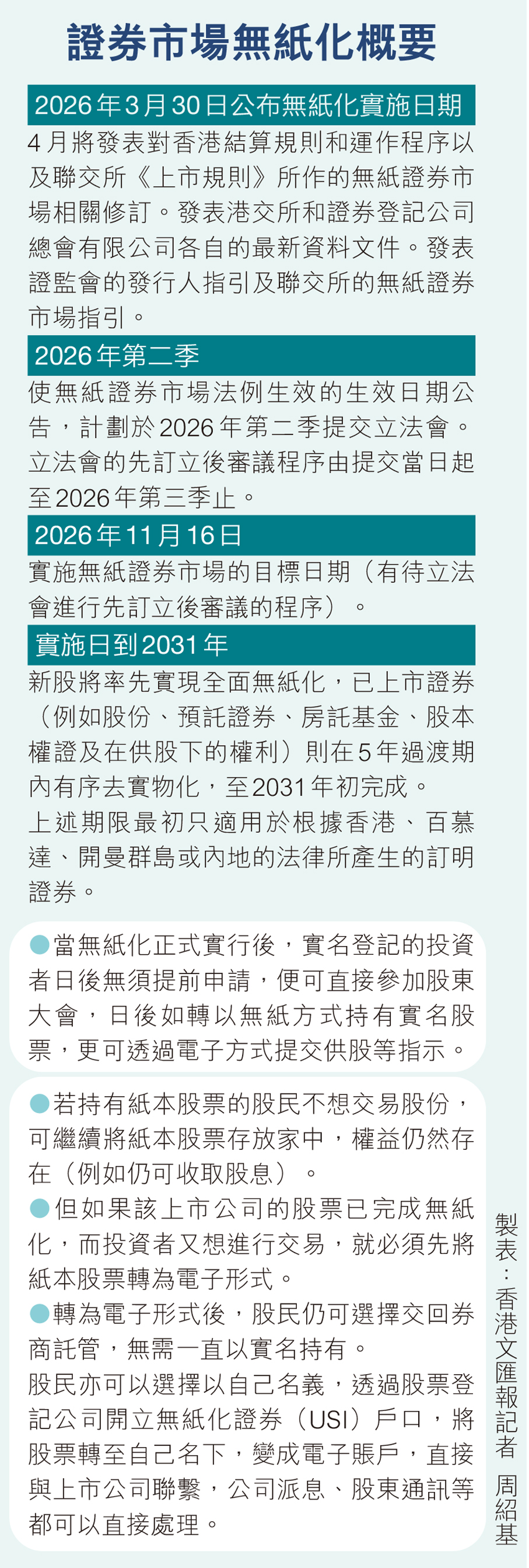 港證券市場無紙化11月16日實施 提升交易效率 實現更多直通式處理投資機會