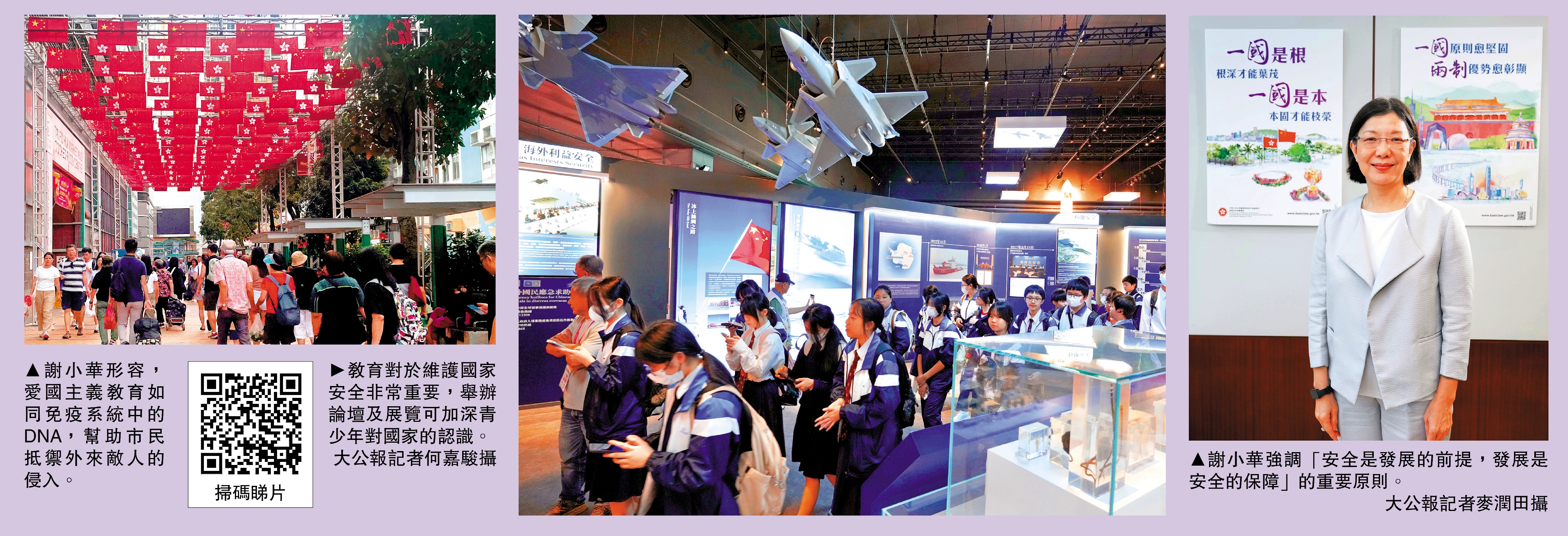 「國家安全是一項任重道遠的責任,需要每天堅持,久久為功。」謝小華在訪問中指出,維護國家安全是每一位國民的應盡之責,只有先維護好國家安全,才能維護各個地區、每個家庭,以及每位市民的安全。她說,局方在維護制度安全方面要下工夫,早前在完善選舉制度和地區治理的基礎上,政制及內地事務局舉辦了多場選舉,確保香港的管治權牢牢掌握在愛國愛港者手中。「在完善選舉制度和地區治理後,我們可以肯定地說,香港在制度層面能夠實現安全。」