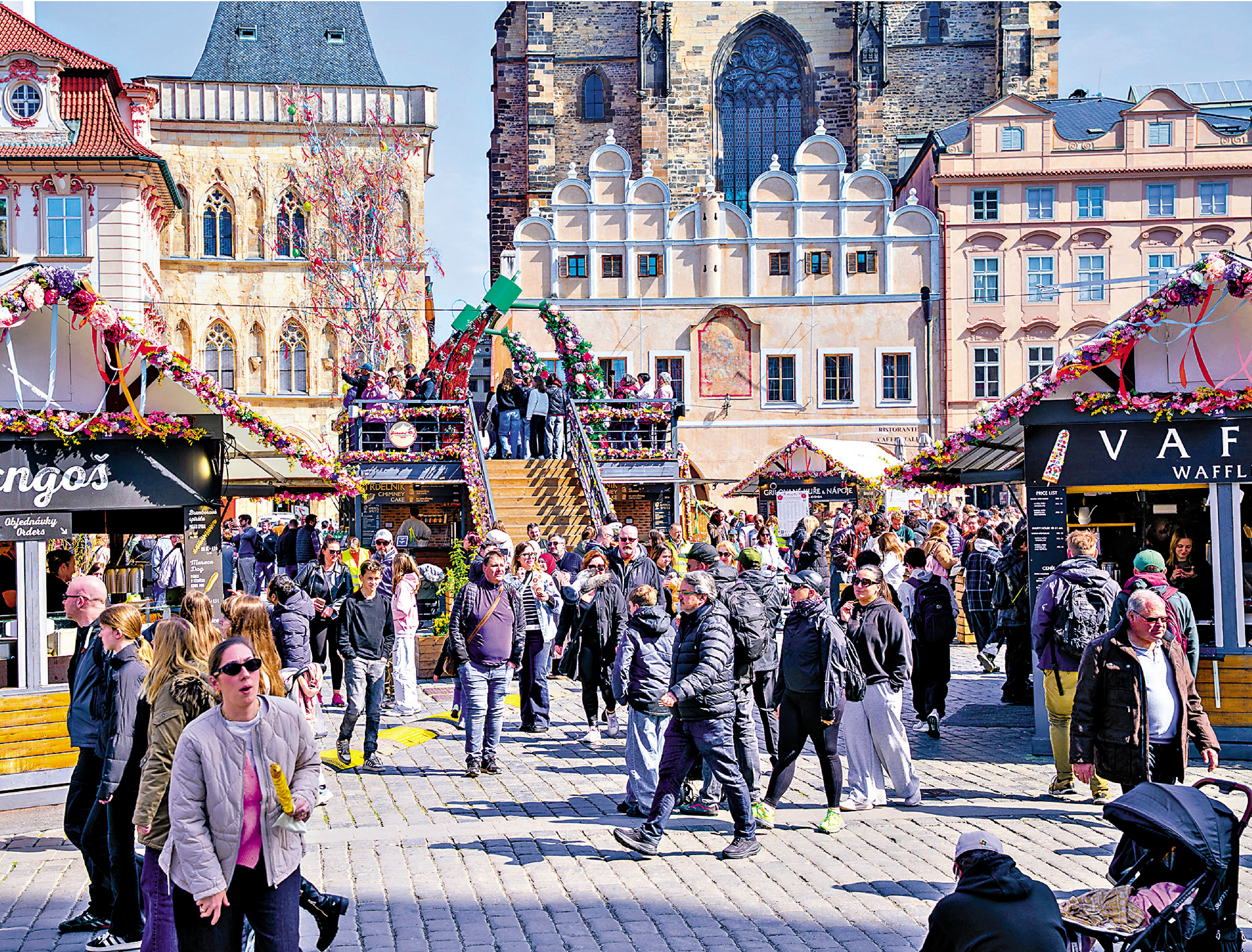 布拉格老城區近日舉辦特色集市,吸引市民與遊客前往感受節日氛圍。