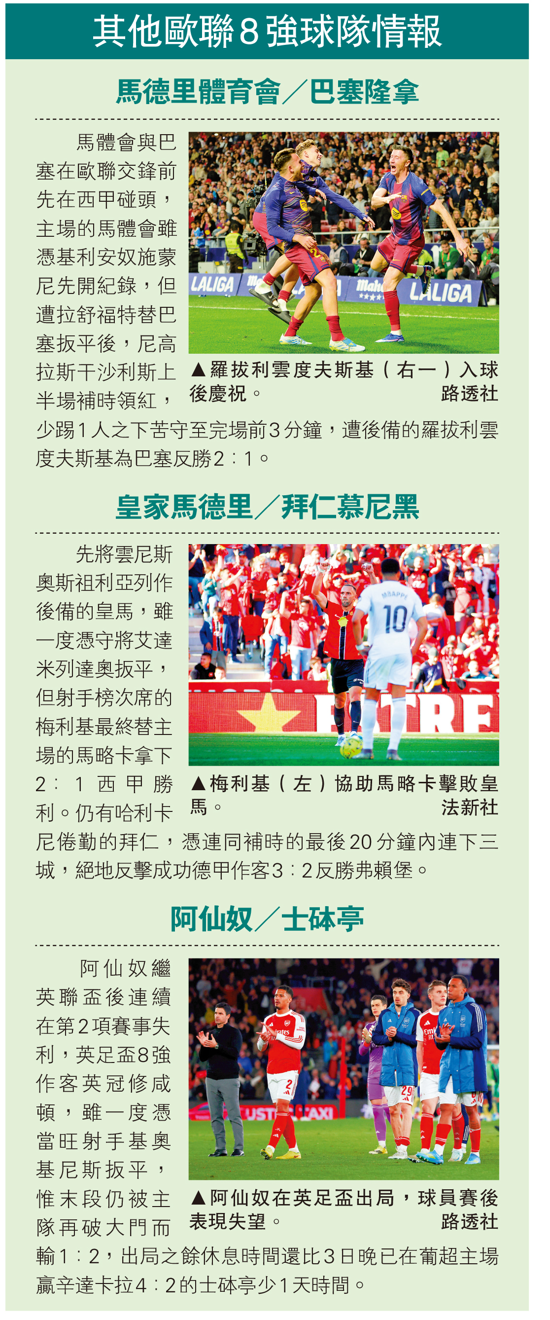 其他歐聯8強球隊情報