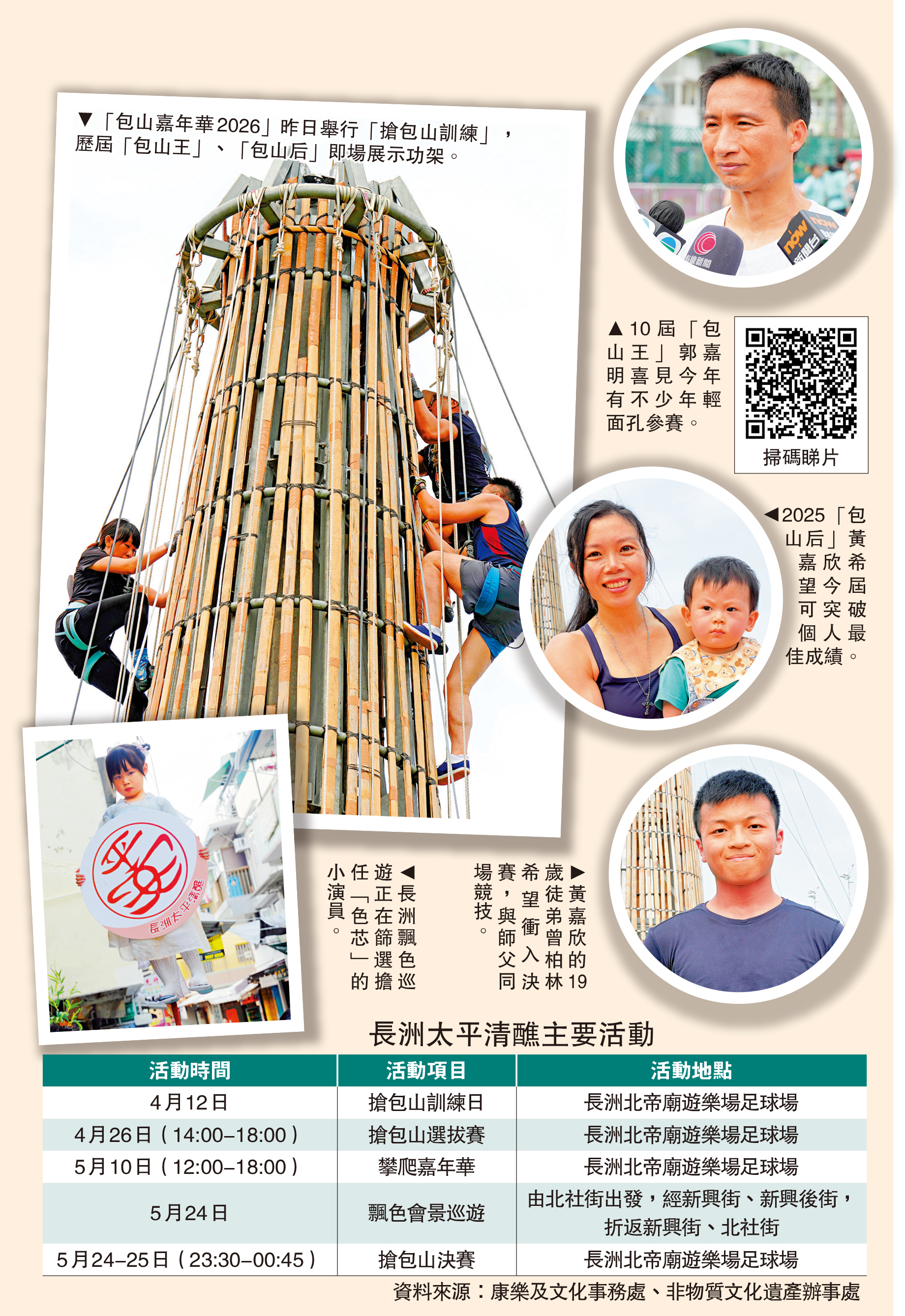 今年的「包山嘉年華2026」系列活動除了備受矚目的搶包山比賽,5月10日還將舉辦「攀爬嘉年華」。活動設有運動主題的攤位遊戲、手工藝製作、綜合表演、許願包山及「攀爬同樂」環節,市民可現場親身體驗攀爬樂趣。