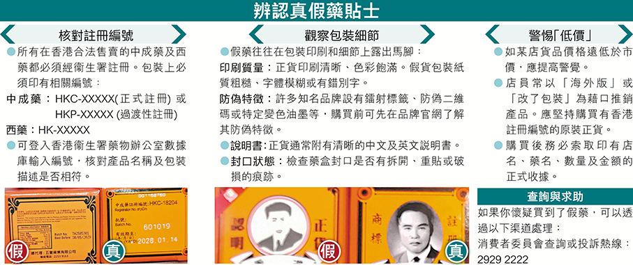 另外,海關亦將打擊店舖銷售俗稱「影射藥」的不法營銷行為,強調若接獲投訴,或在巡查中發現,將展開跟進調查是否違反《商品說明條例》的規定,若有足夠證據,會採取執法行動。旅客若有心儀藥品,應事先做好資料搜集以及拍照,再向藥店店員清楚明確地表示想要的產品,以避免被店員誤導或買錯產品。