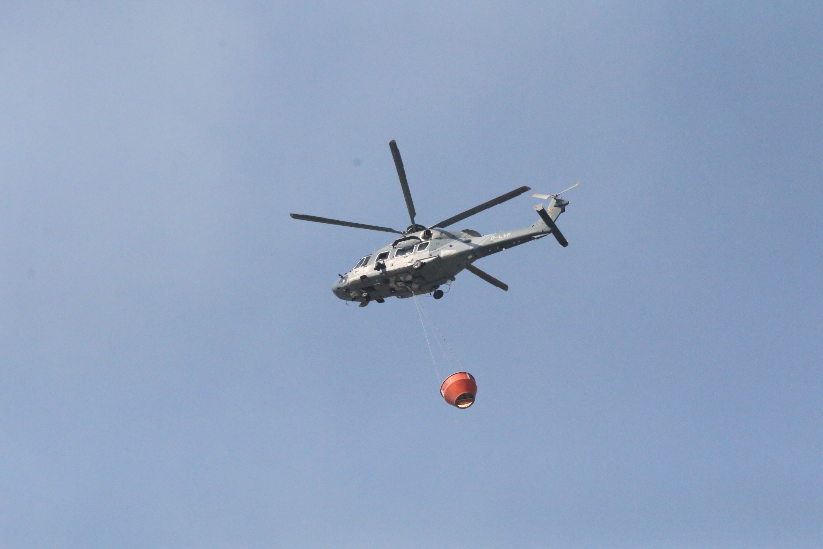政府飛行服務隊直升機投擲水彈救火。(大公文匯全媒體記者攝)